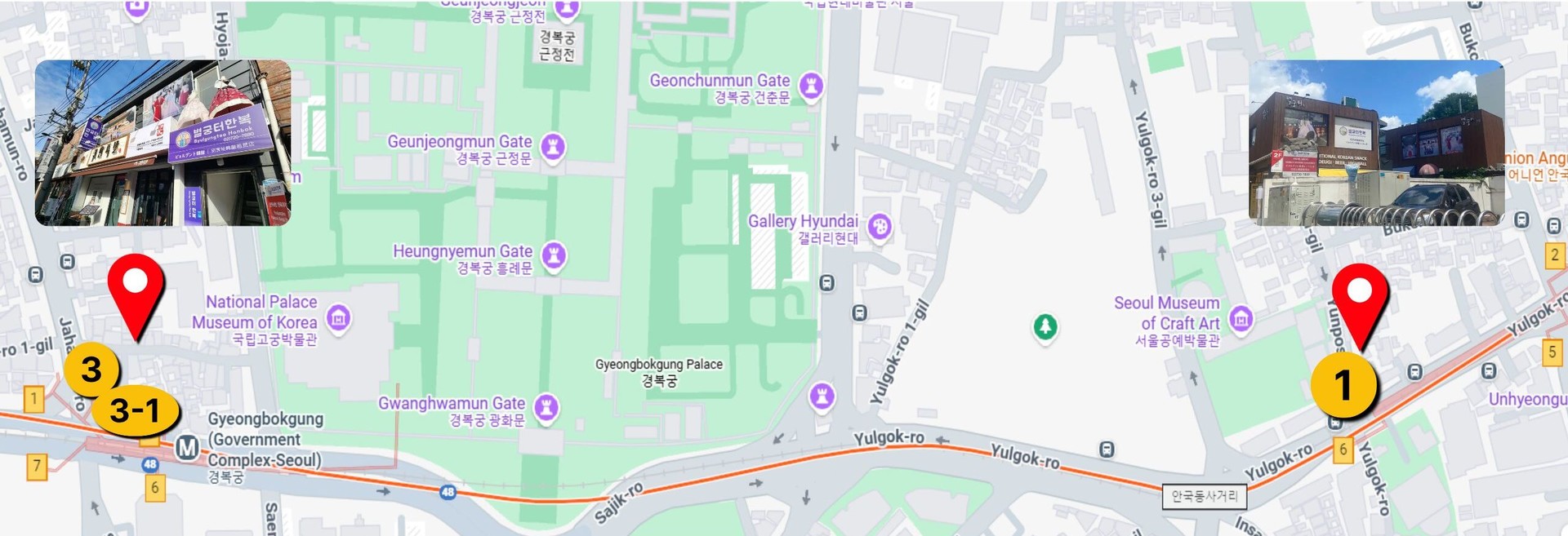 ■ Gyeongbokgung Branch: Line 3, Gyeongbokgung Station Exit 3 or 3-1, 2-minute walk